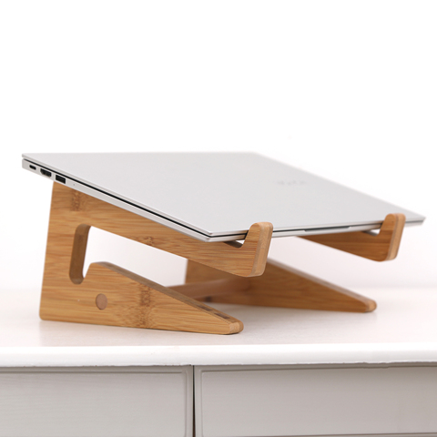 Venta especial Soporte de soporte para computadora portátil de escritorio de madera natural respetuoso con el medio ambiente con estantes de utilidad prácticos para computadora portátil universal